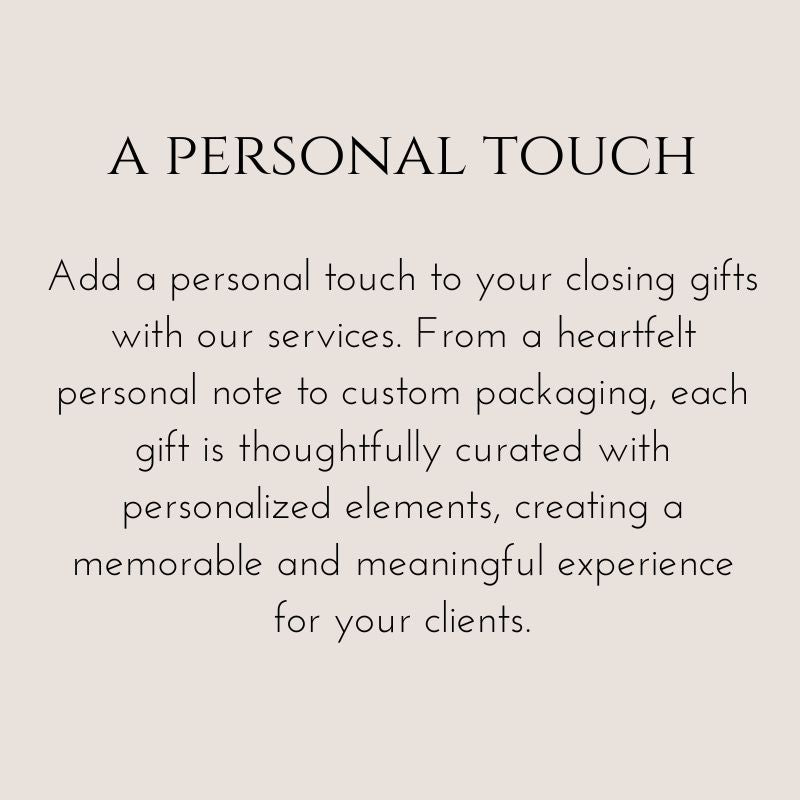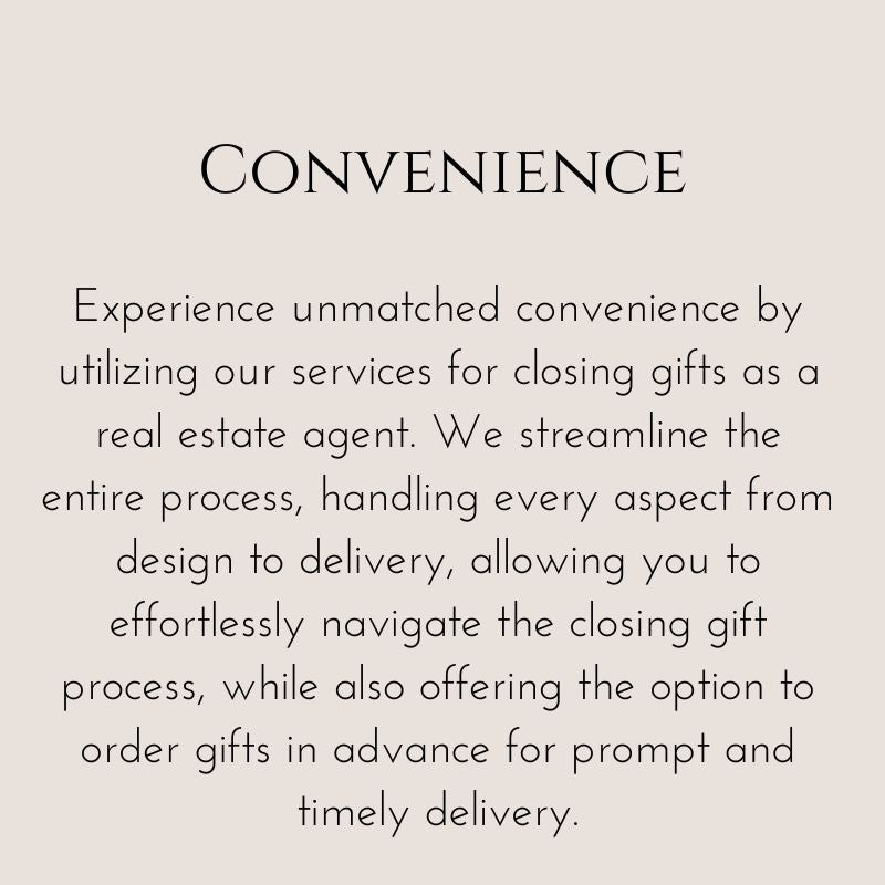 Welcome to our page designed exclusively for real estate agents, where we offer a world of advantages to enhance your closing gift experience. Get ready to unlock unparalleled convenience as we guide you through a seamless journey, effortlessly navigating every step from design to delivery. With the option to order gifts in advance, we ensure prompt and timely delivery, taking convenience to a whole new level.