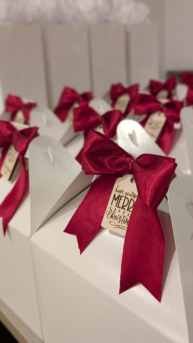 Each of our gift basket come with a box token made out of Baltic Birch. At Checkout in the notes section, simply let us know what the gift is for and we will create an appropriate token for your special occasion.