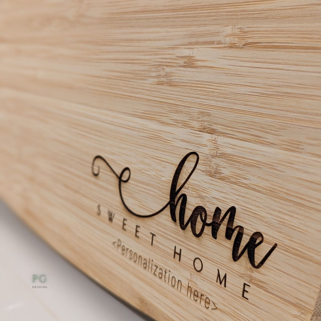 Add a personal touch by adding the recipients names below 'Home Sweet Home'. Some baskets include a set of two bamboo utensils which will also include the name(s) provided.
